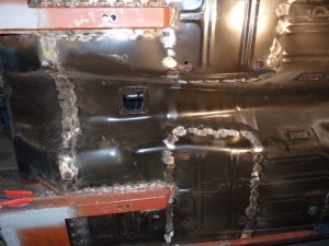 Zum Schluß habe ich dann noch die hinteren Torque Boxen mit einer Naht am Bodenblech verschweißt.
