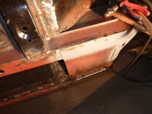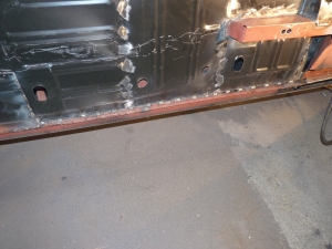 Dann habe ich noch das Bodenblech zu den Schweller von unten zusätzlich gepunktet.