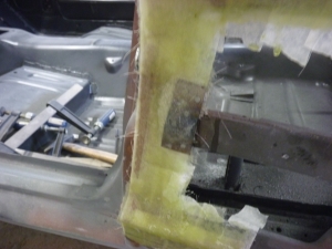 Dafür ist hier unten noch deutlich mehr Arbeit, dazu habe ich heute Spachtel auf die mit Fiberglas-Chips aufgefüllte Stelle unten aufgetragen