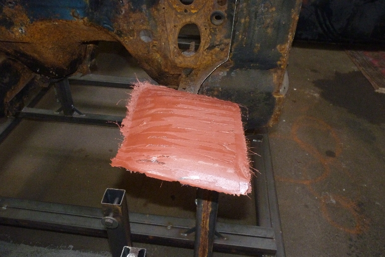 An der Karosserie habe ich das bereits abgenommene Dach von innen entrostet und dann mit Zinkphosphatgrund versiegelt.
